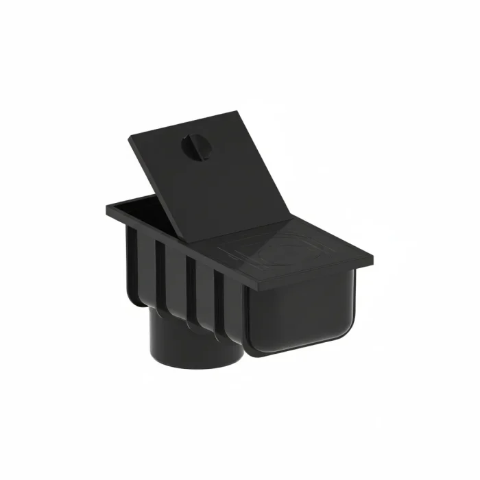 Leaf Gully collects any debris that may accumulate on the roof slope, which goes into the settling tank with rain through the gutter system, preventing blockages and clogging of drain pipes. It serves as a connector between the gutter system and the sewer system. It is one of the few to have a flap with a cut-out for a square tube.